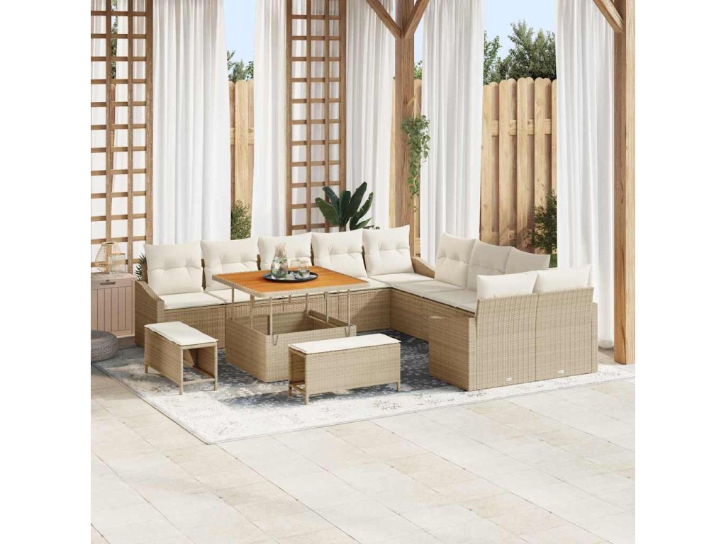 Sada zahradních pohovek s polštářem 13 pcs Béžová a krémová 3364656