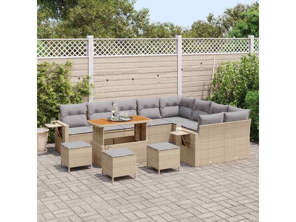 Sada zahradních pohovek s polštářem 13 pcs béžová a světle šedá 3363742