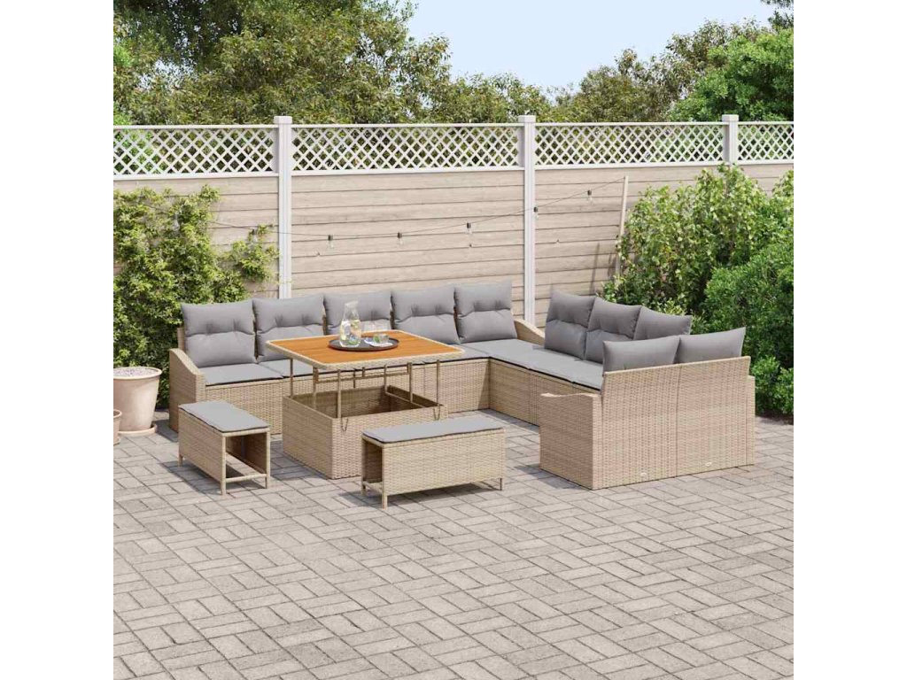 Sada zahradních pohovek s polštářem 13 pcs Béžová Poly ratan 3362707
