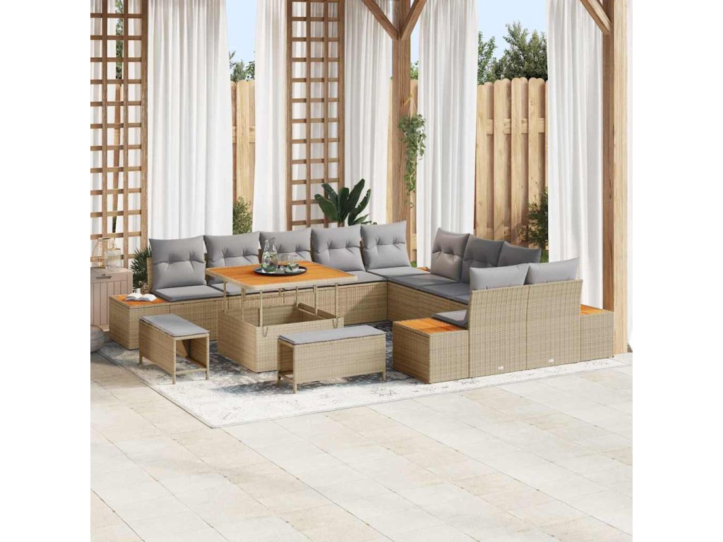 Sada zahradních pohovek s polštářem 13 pcs Béžová Poly ratan 3362967