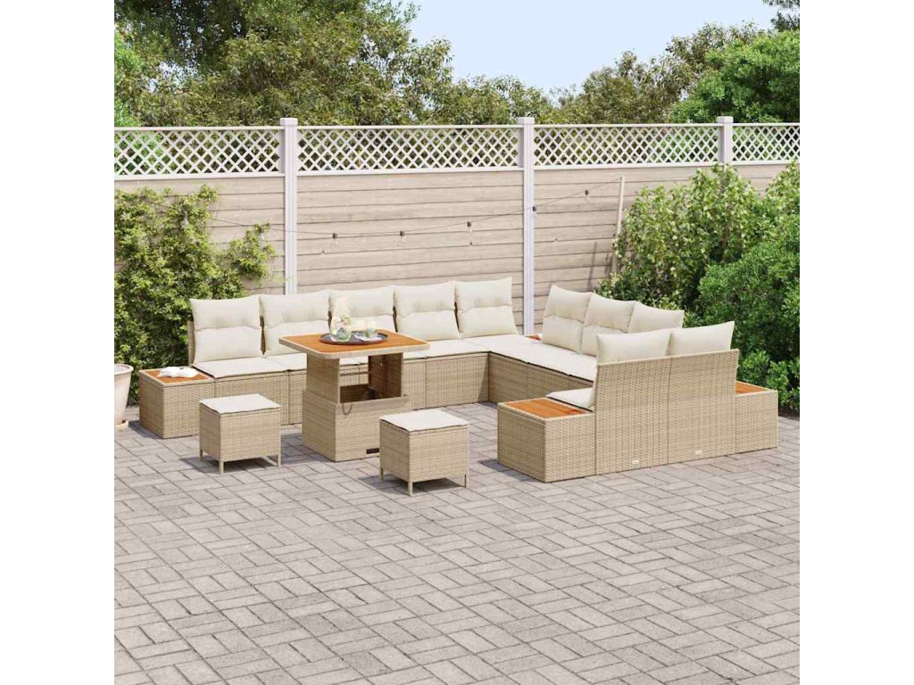 Sada zahradních pohovek s polštářem 13 pcs Béžová Poly ratan 3362971