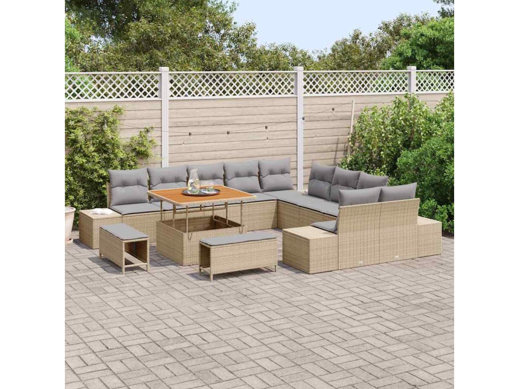 Sada zahradních pohovek s polštářem 13 pcs Béžová Poly ratan 3364787