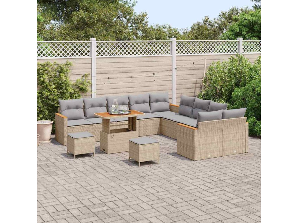 Sada zahradních pohovek s polštářem 13 pcs Béžová Poly ratan 3365057