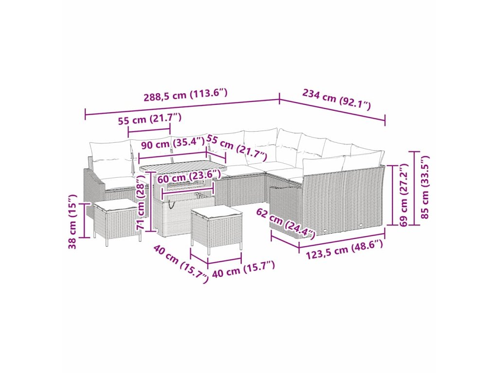 Sada zahradních pohovek s polštářem 13 pcs Béžová polyratan 3362716