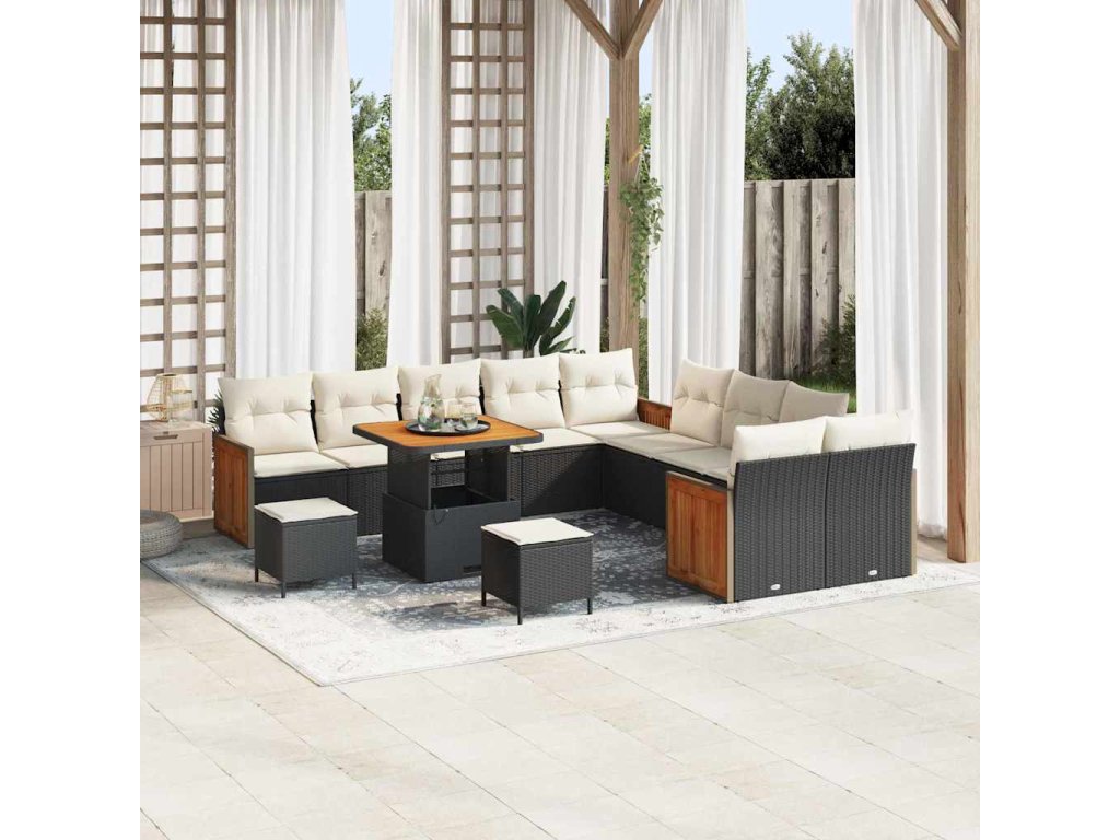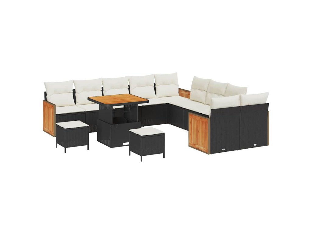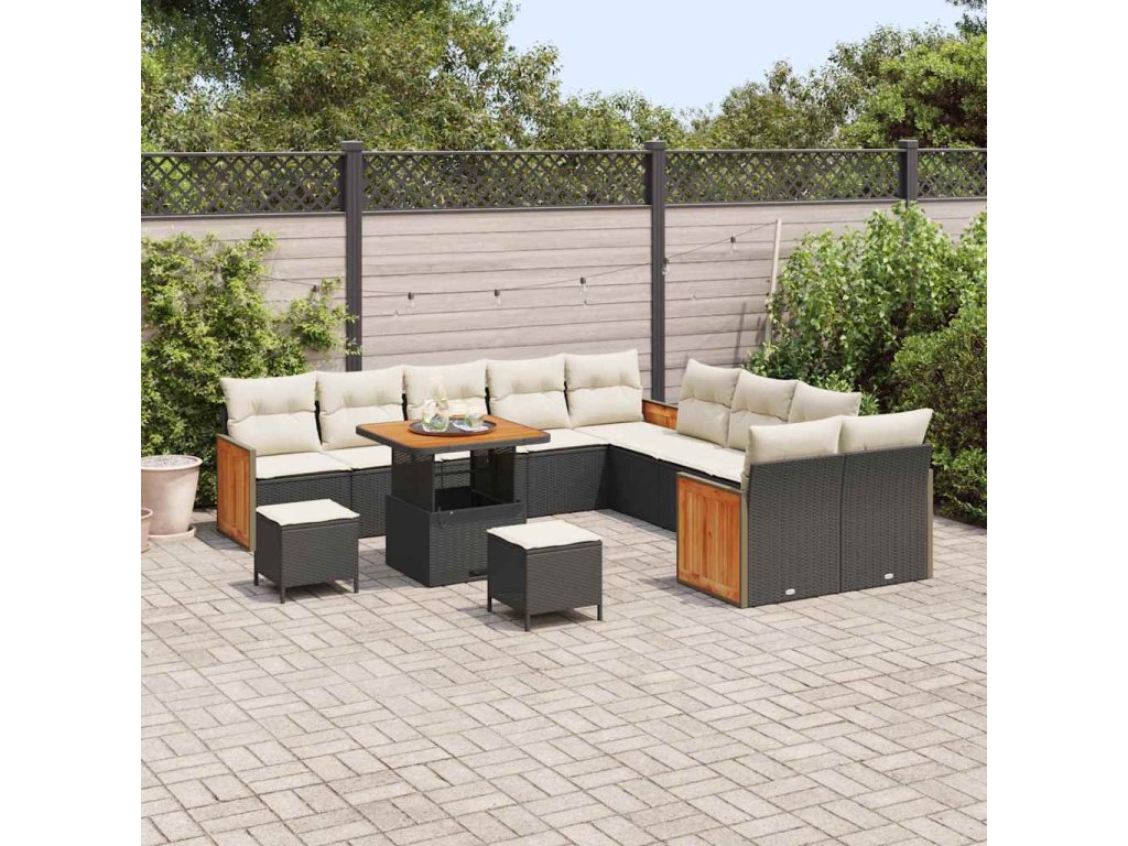 Sada zahradních pohovek s polštářem 13 pcs Černá a krémová 3363360