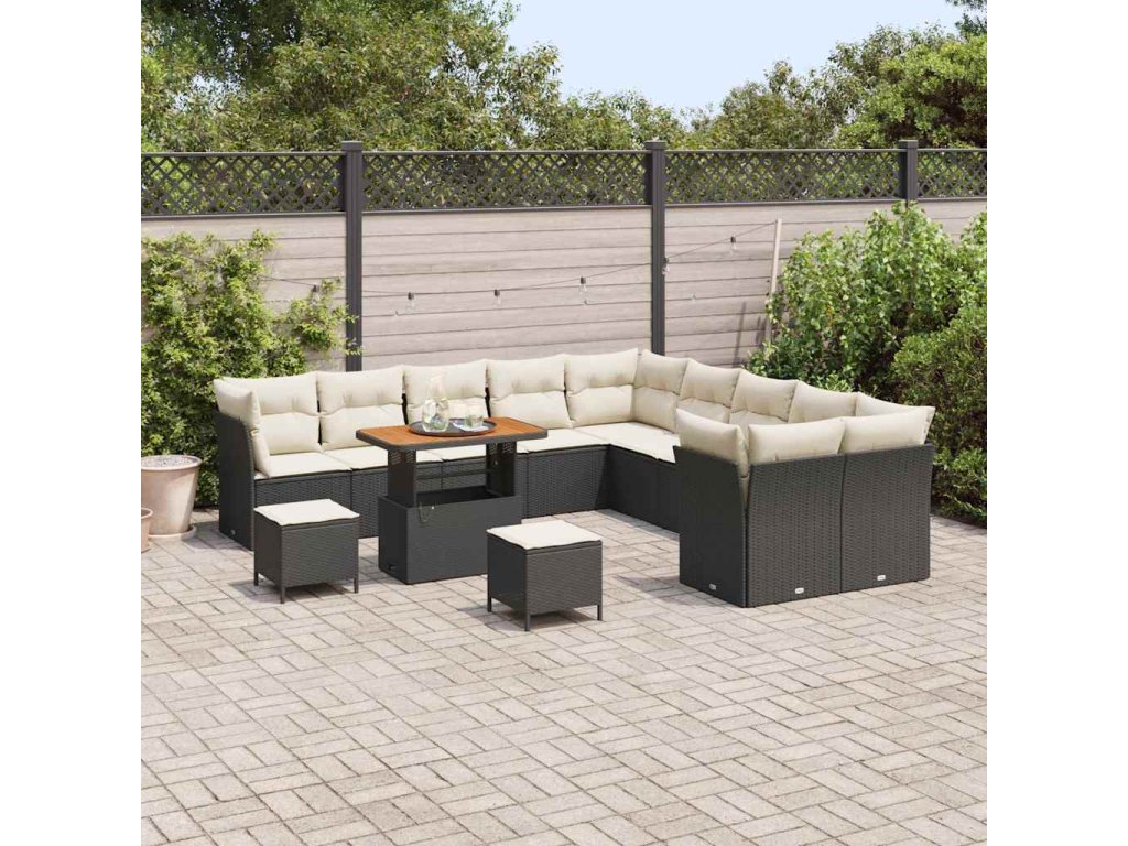 Sada zahradních pohovek s polštářem 13 pcs Černá a krémová 3363495
