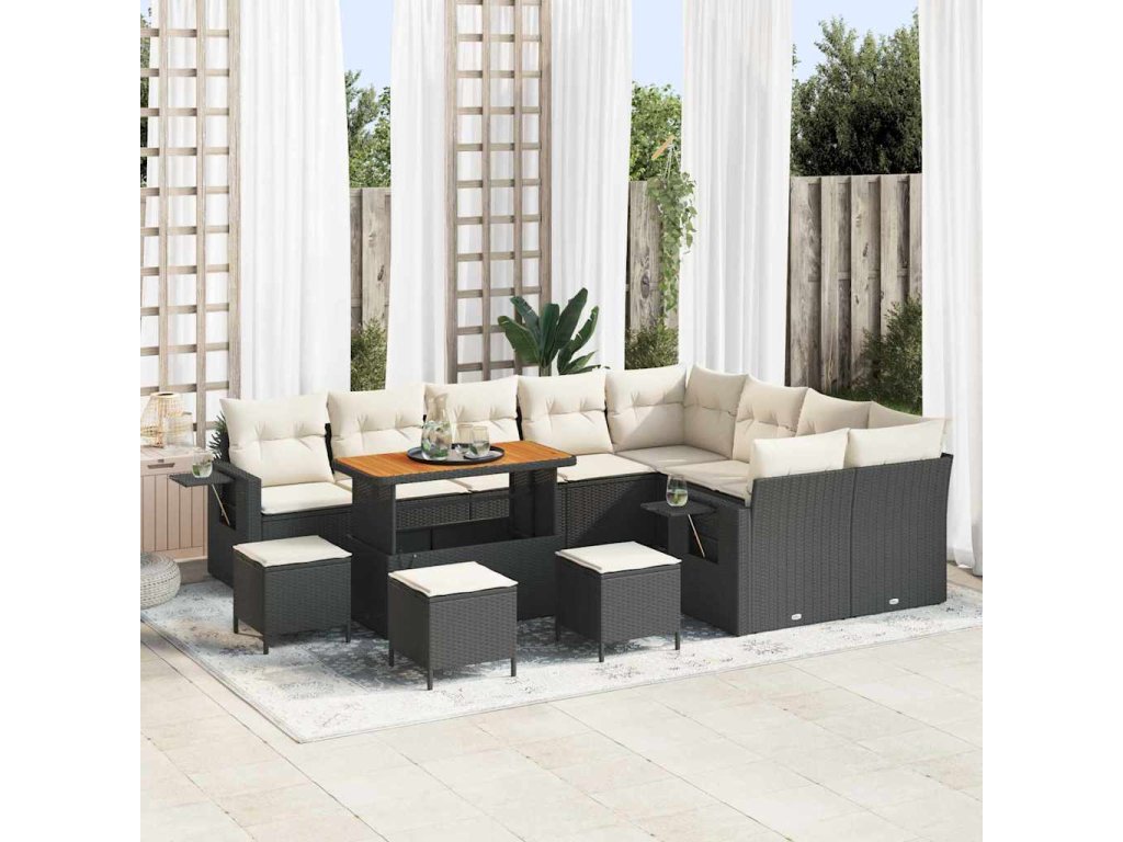 Sada zahradních pohovek s polštářem 13 pcs Černá a krémová 3363740