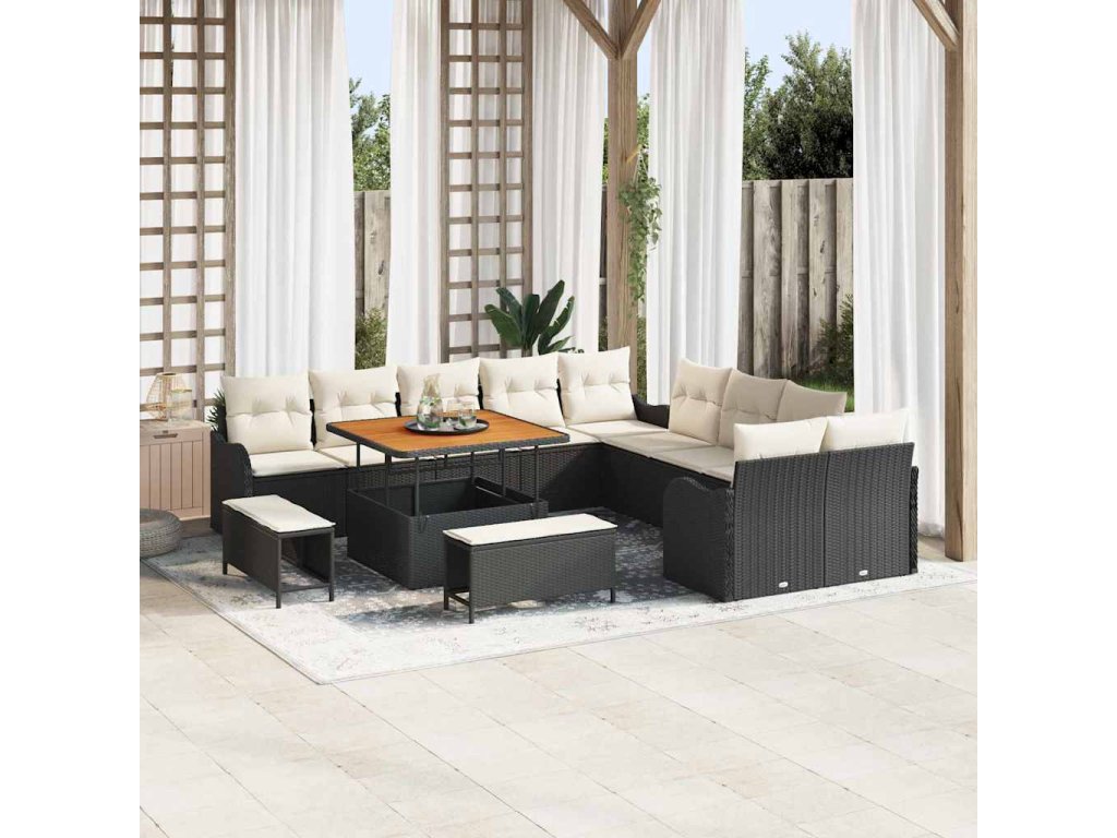 Sada zahradních pohovek s polštářem 13 pcs Černá a krémová 3364265