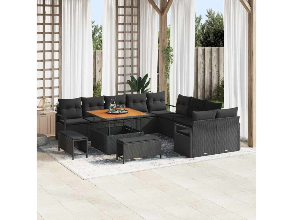 Sada zahradních pohovek s polštářem 13 pcs Černá Poly ratan 3362574