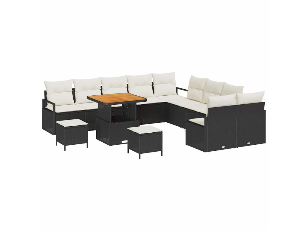 Sada zahradních pohovek s polštářem 13 pcs Černá Poly ratan 3362580