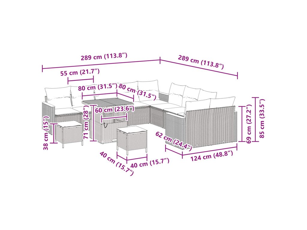 Sada zahradních pohovek s polštářem 13 pcs Černá Poly ratan 3363099