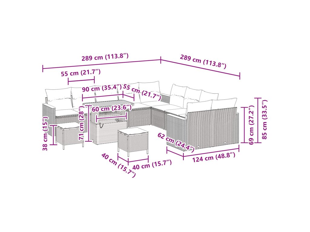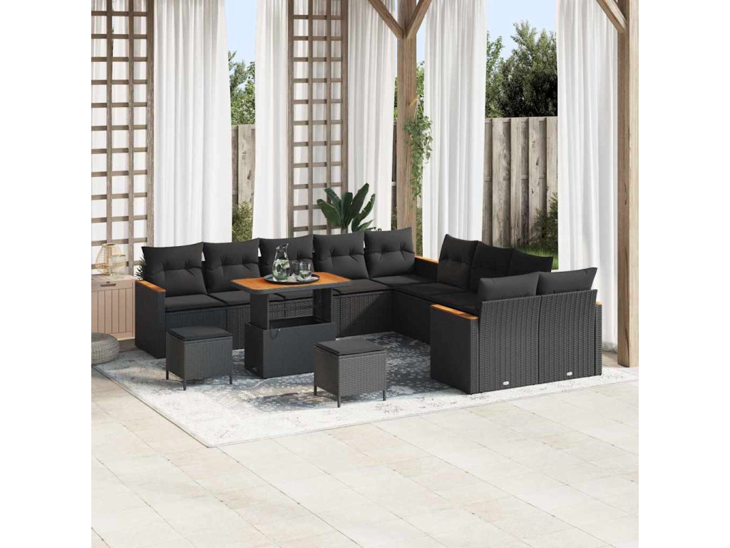 Sada zahradních pohovek s polštářem 13 pcs Černá Poly ratan 3363104