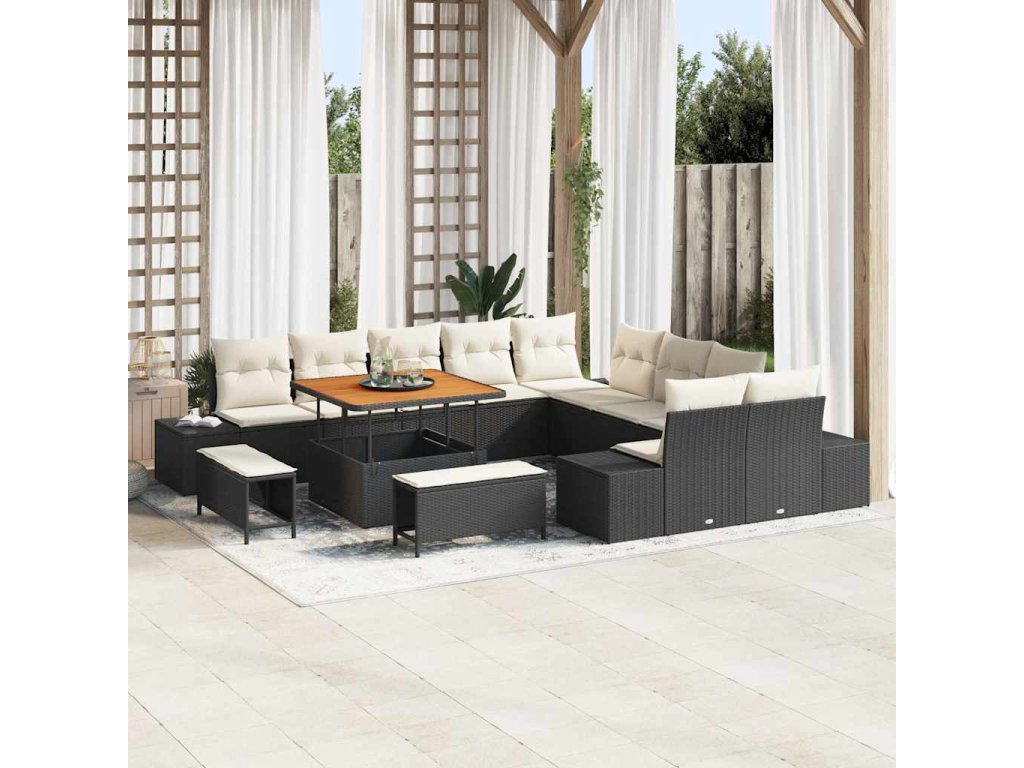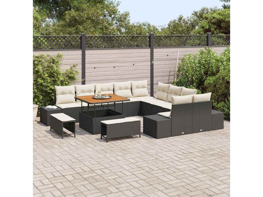 Sada zahradních pohovek s polštářem 13 pcs Černá Poly ratan 3364785
