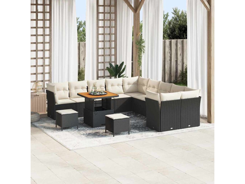 Sada zahradních pohovek s polštářem 13 pcs Černá polyratan 3361540