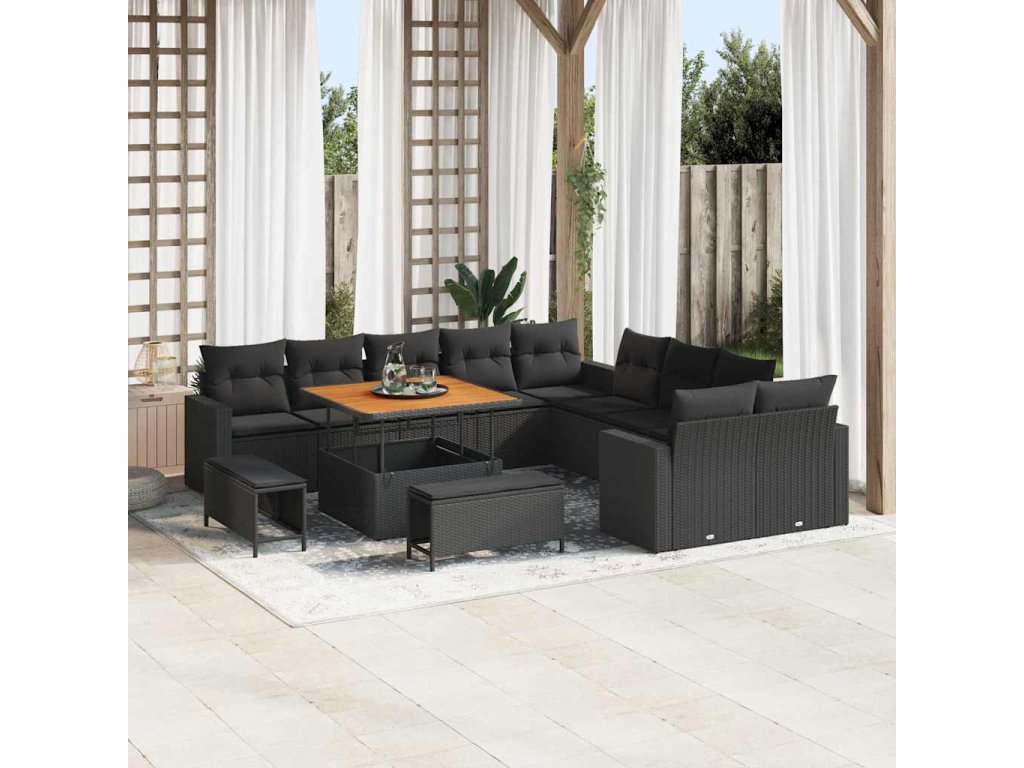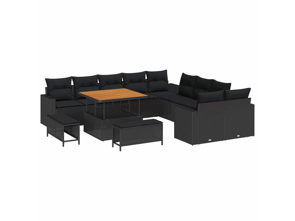 Sada zahradních pohovek s polštářem 13 pcs Černá polyratan 3361664