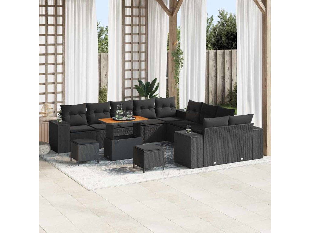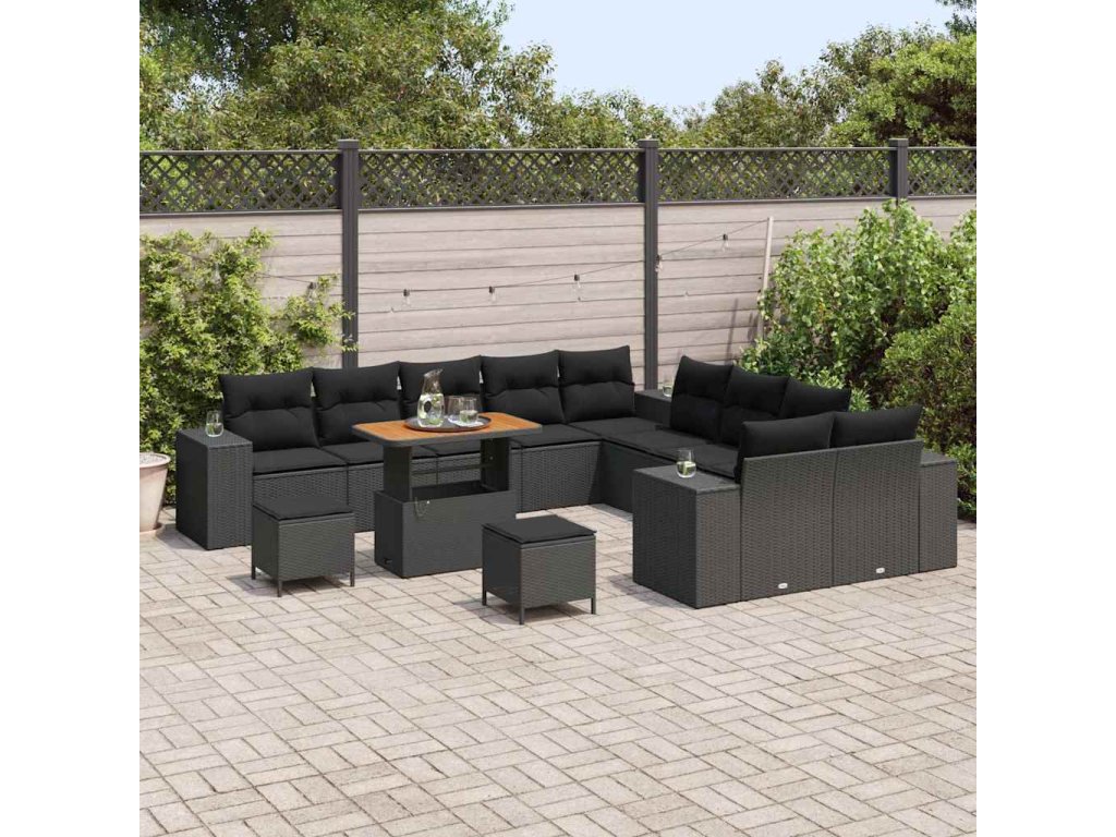 Sada zahradních pohovek s polštářem 13 pcs Černá polyratan 3362064
