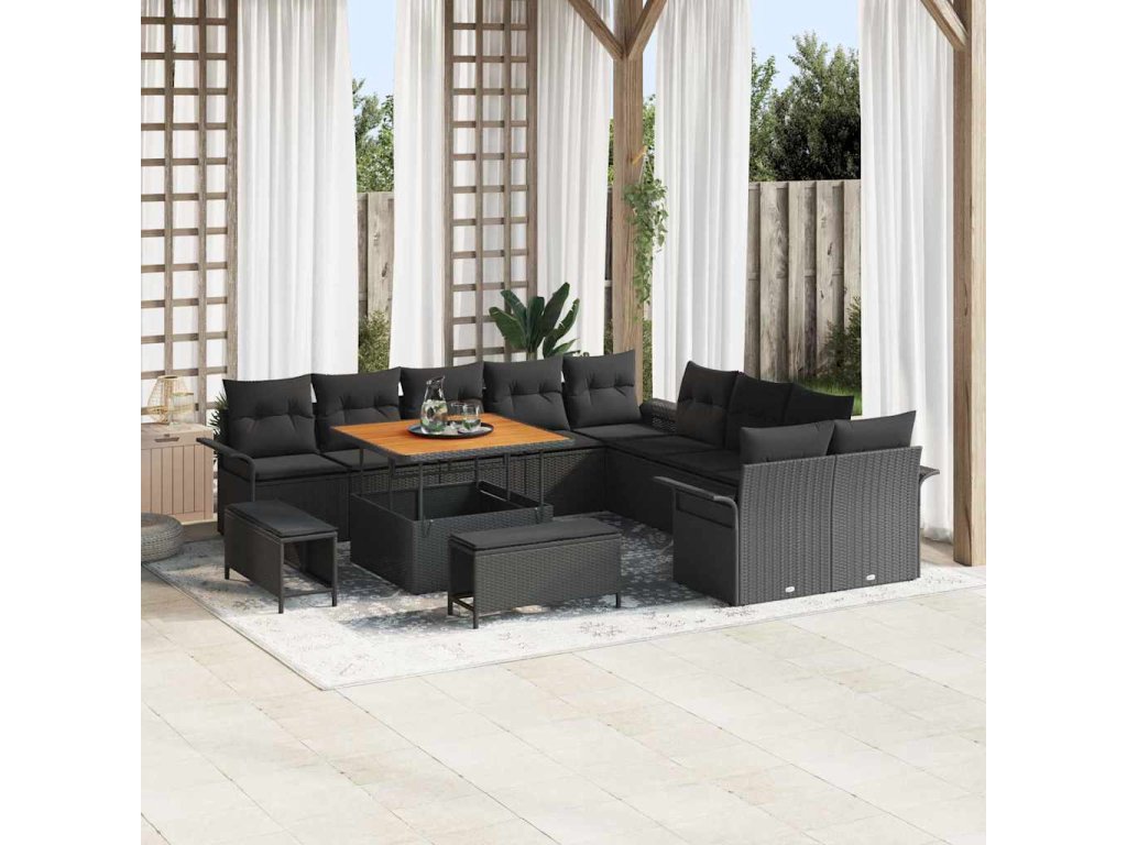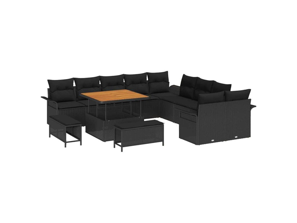 Sada zahradních pohovek s polštářem 13 pcs Černá polyratan 3362184