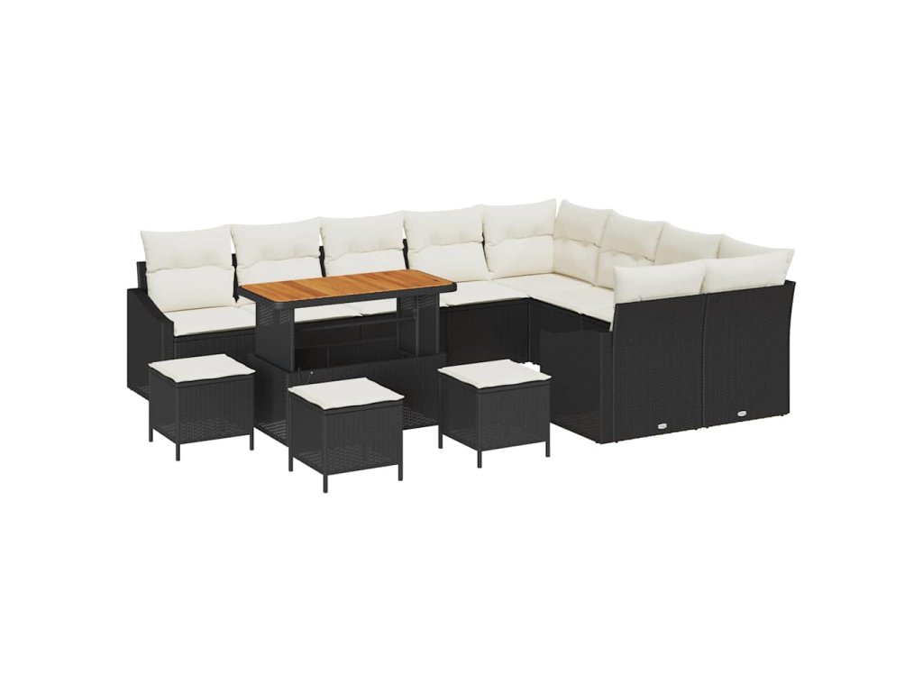 Sada zahradních pohovek s polštářem 13 pcs Černá polyratan 3362700