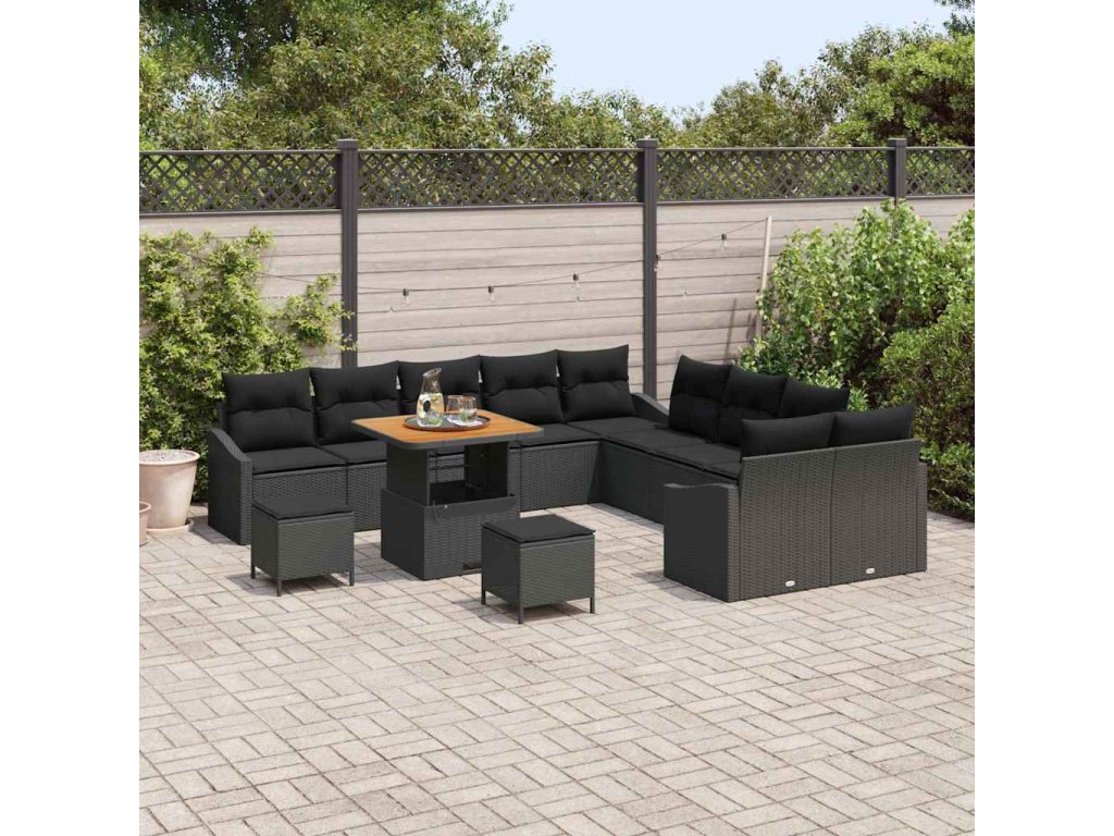 Sada zahradních pohovek s polštářem 13 pcs Černá polyratan 3362709