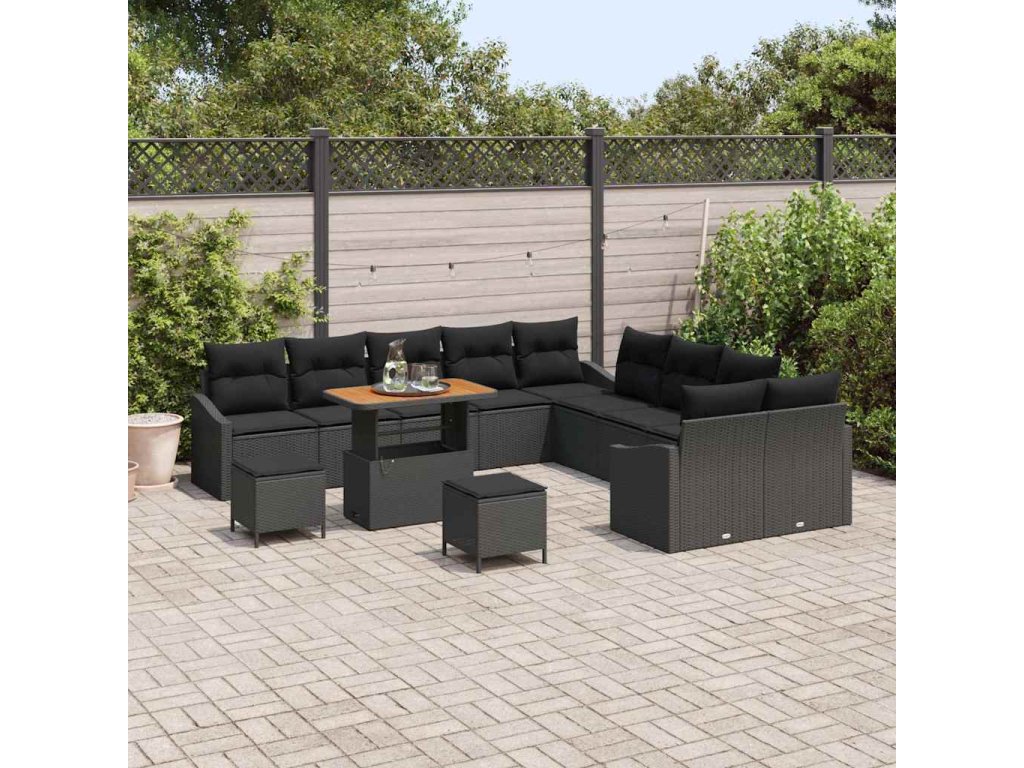 Sada zahradních pohovek s polštářem 13 pcs Černá polyratan 3362714