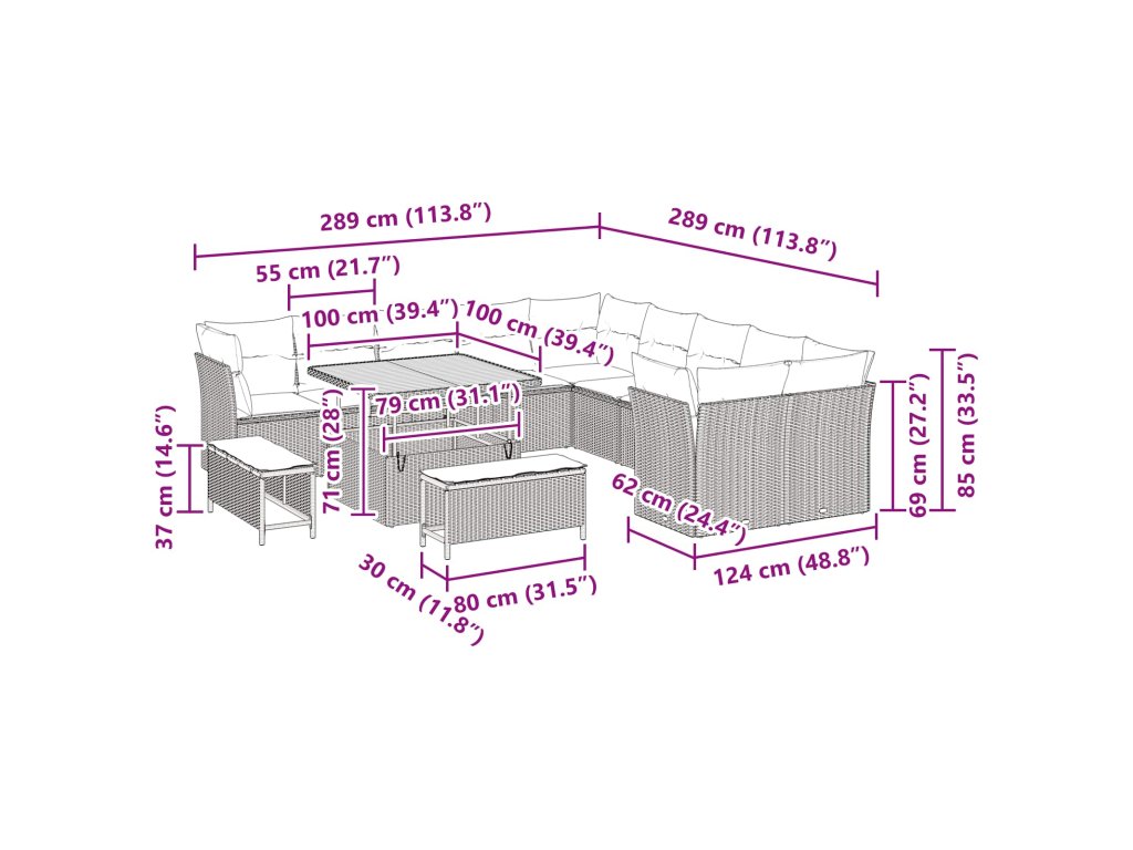 - 4 x Rohová sedačka: 62 x 62 x 85 cm (ŠxHxV)