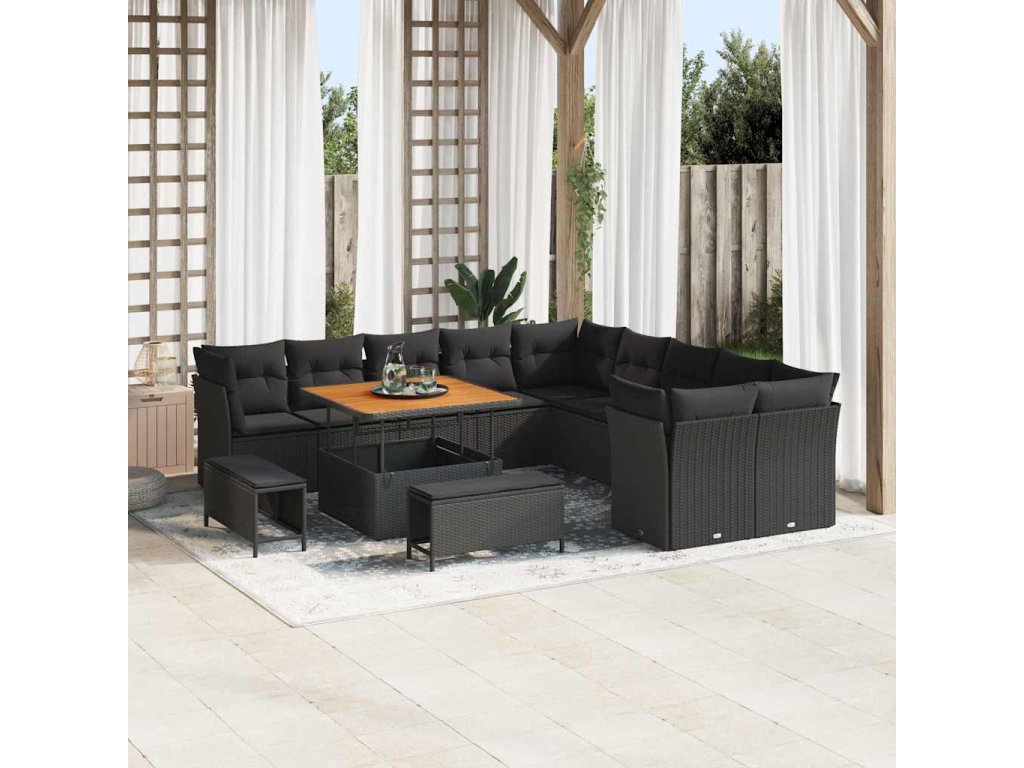 Sada zahradních pohovek s polštářem 13 pcs Černá polyratan 3363484