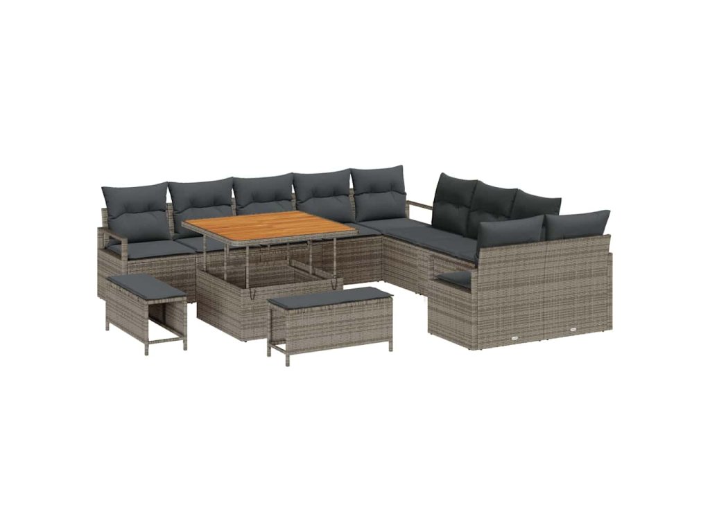 Sada zahradních pohovek s polštářem 13 pcs Šedá Poly ratan 3362578