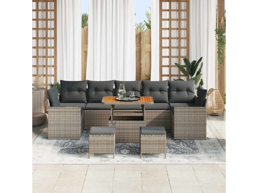 Modulární zahradní pohovkový set spojuje funkčnost a styl pro vaše venkovní prostory. Jeho přizpůsobitelný design umožňuje různé konfigurace, které se hodí do všech zahrad a na terasy. S čistými liniemi a minimálním zdobením vyzařuje elegance, která skvěle doplní jakékoli moderní venkovní prostředí.