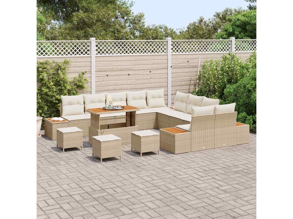 Sada zahradních pohovek s polštářem 14 pcs Béžová Poly ratan 3362981