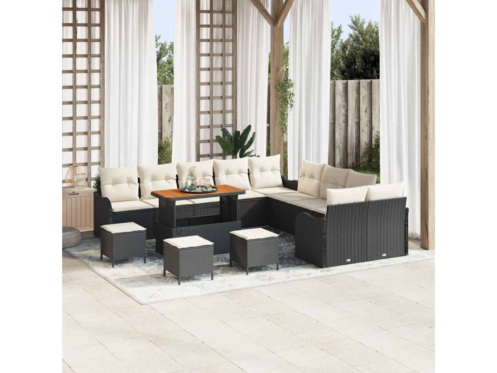 Sada zahradních pohovek s polštářem 14 pcs Černá a krémová 3364280