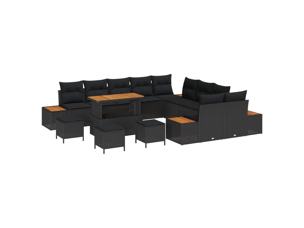 Sada zahradních pohovek s polštářem 14 pcs Černá Poly ratan 3364929