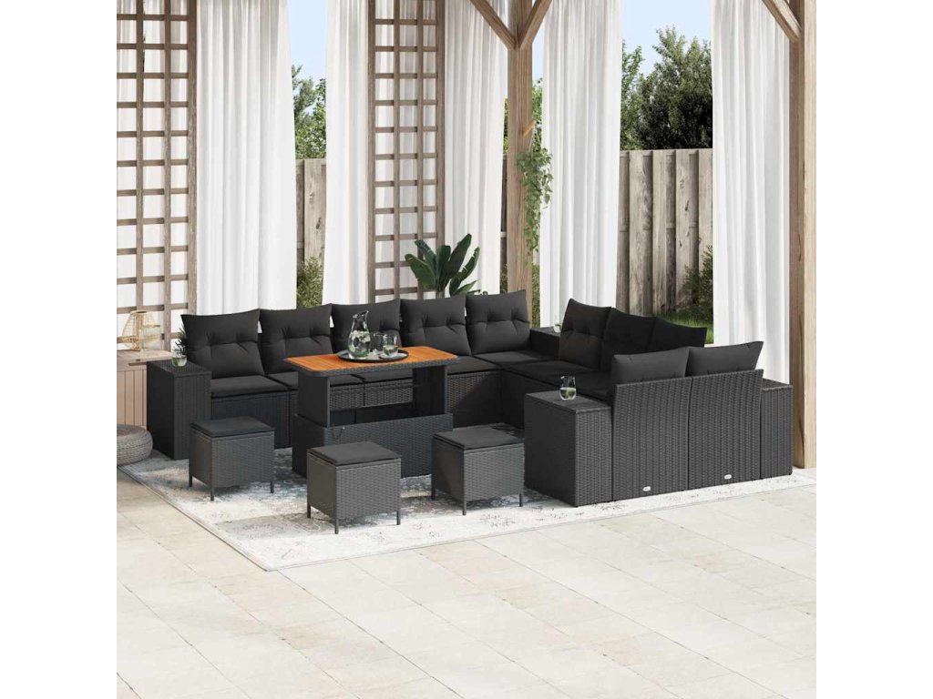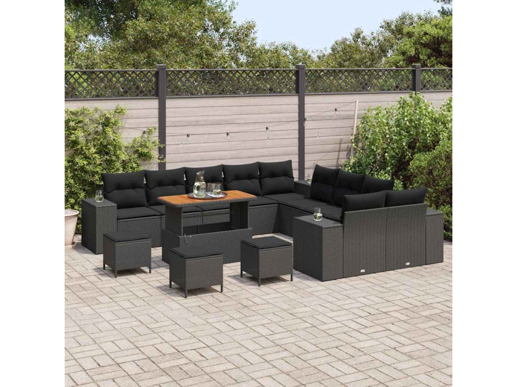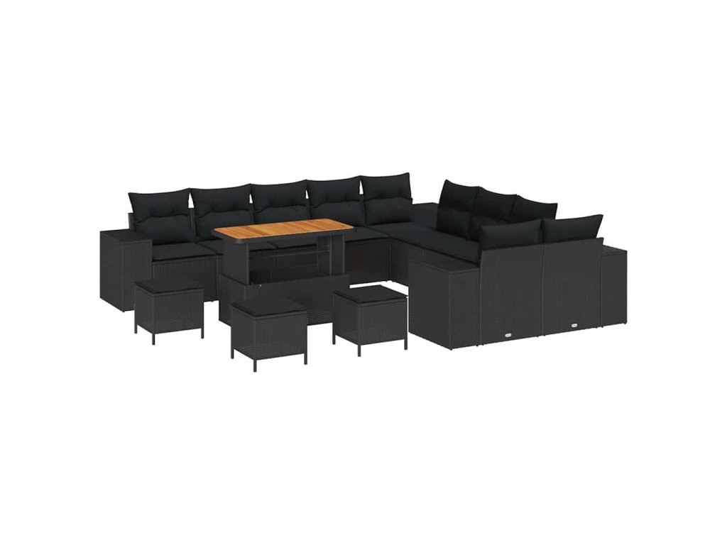 Sada zahradních pohovek s polštářem 14 pcs Černá polyratan 3362069