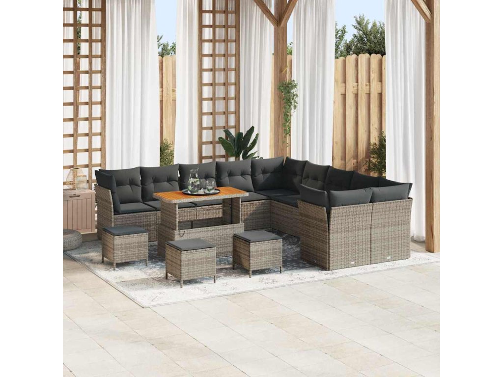 Sada zahradních pohovek s polštářem 14 pcs Šedá polyratan 3361553