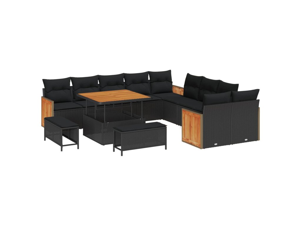 Sada zahradních pohovek s polštářem 17 pcs Černá polyratan 3365304