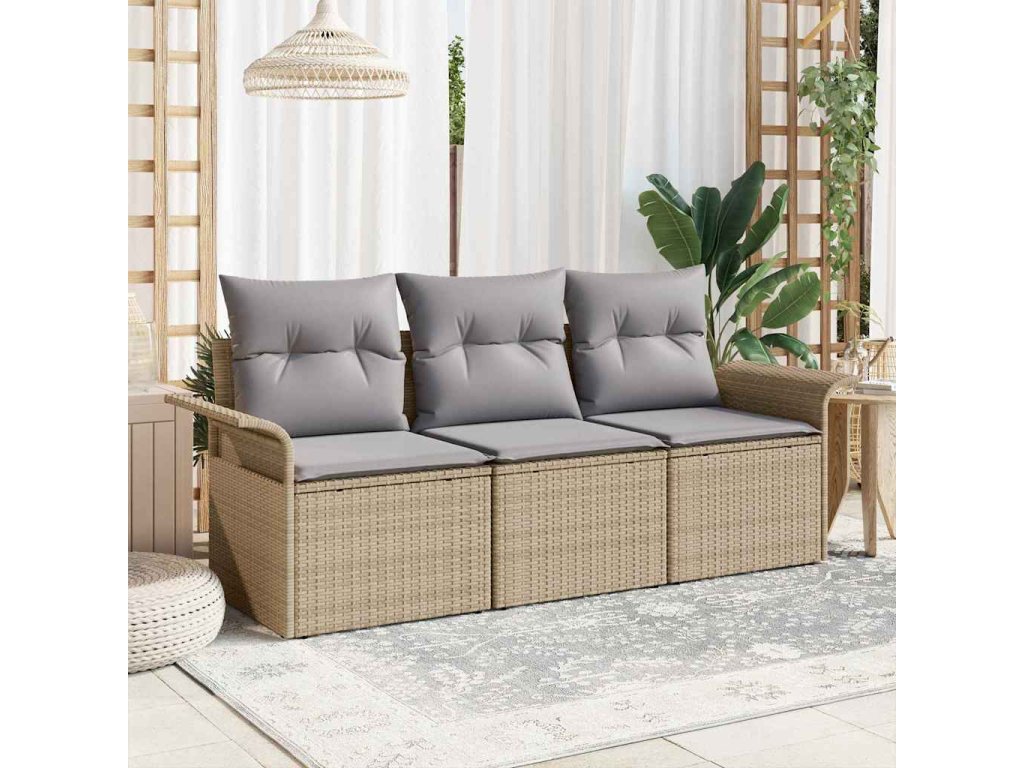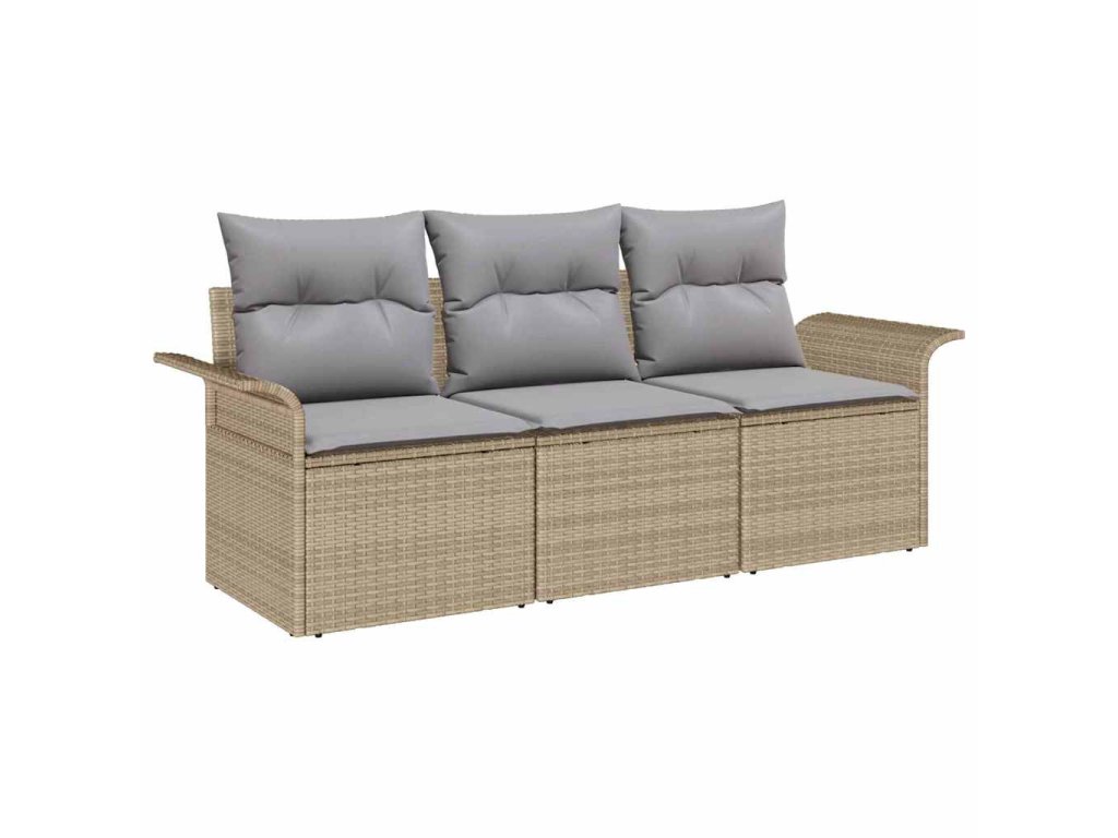 Sada zahradních pohovek s polštářem 3 pcs Béžová Poly ratan 3353889