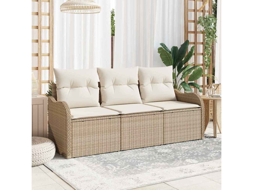 Sada zahradních pohovek s polštářem 3 pcs Béžová polyratan 3345561