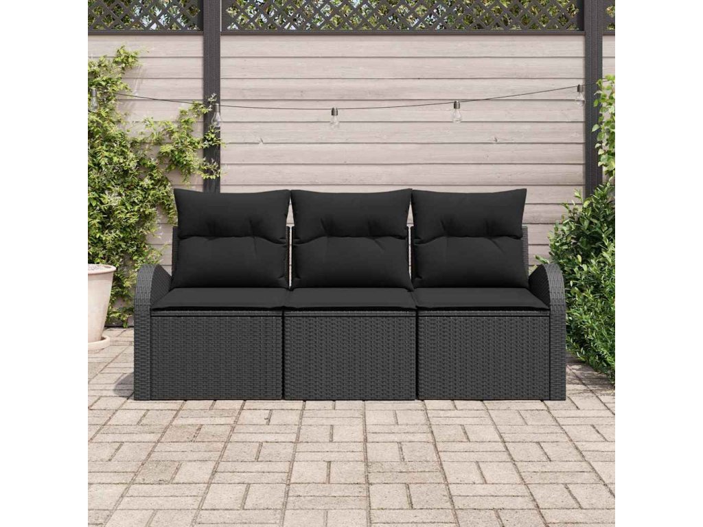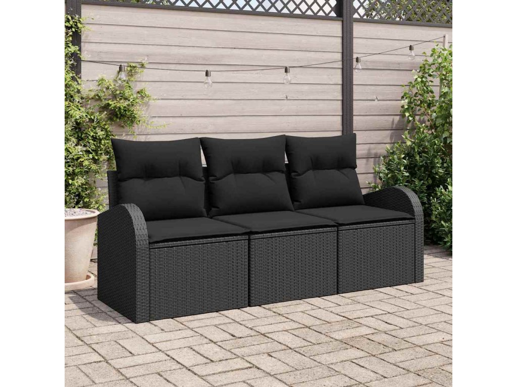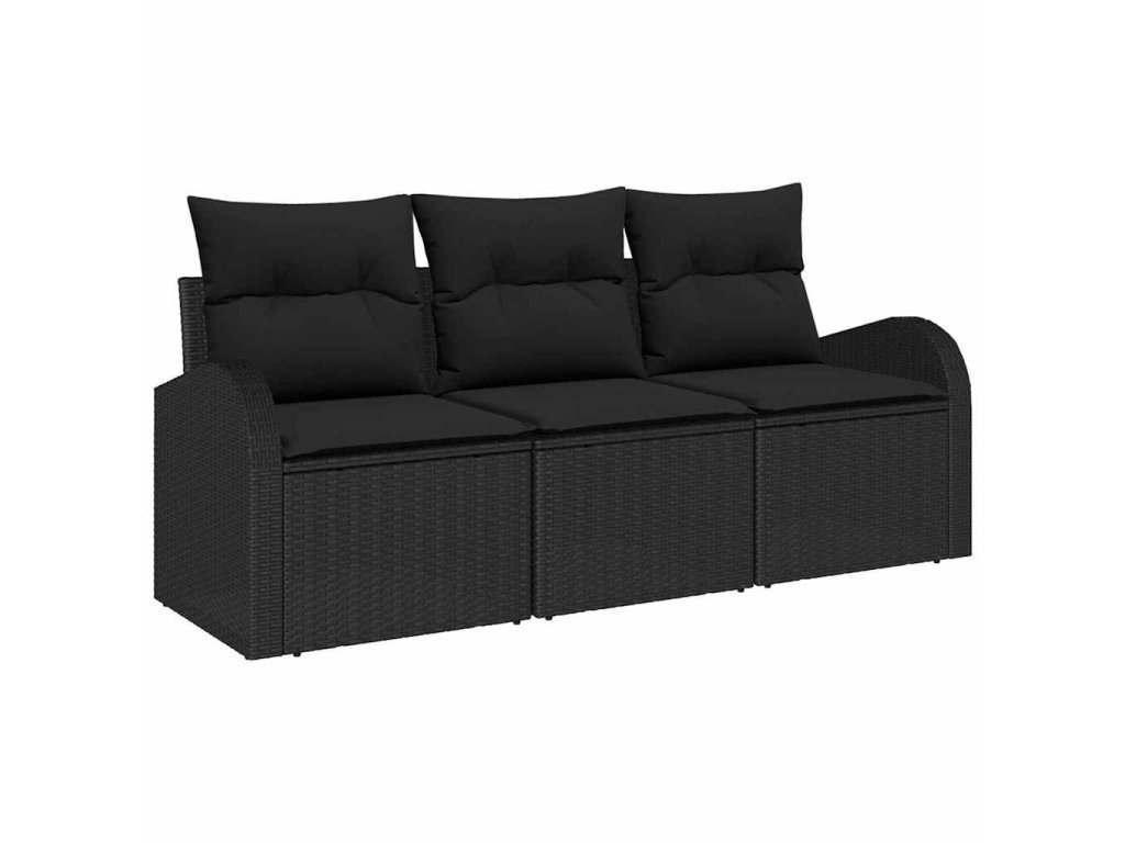 Sada zahradních pohovek s polštářem 3 pcs Černá Poly ratan 3354572