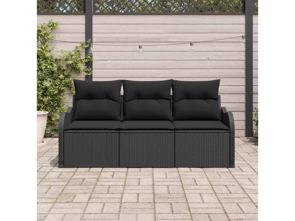 Sada zahradních pohovek s polštářem 3 pcs Černá polyratan 3345563