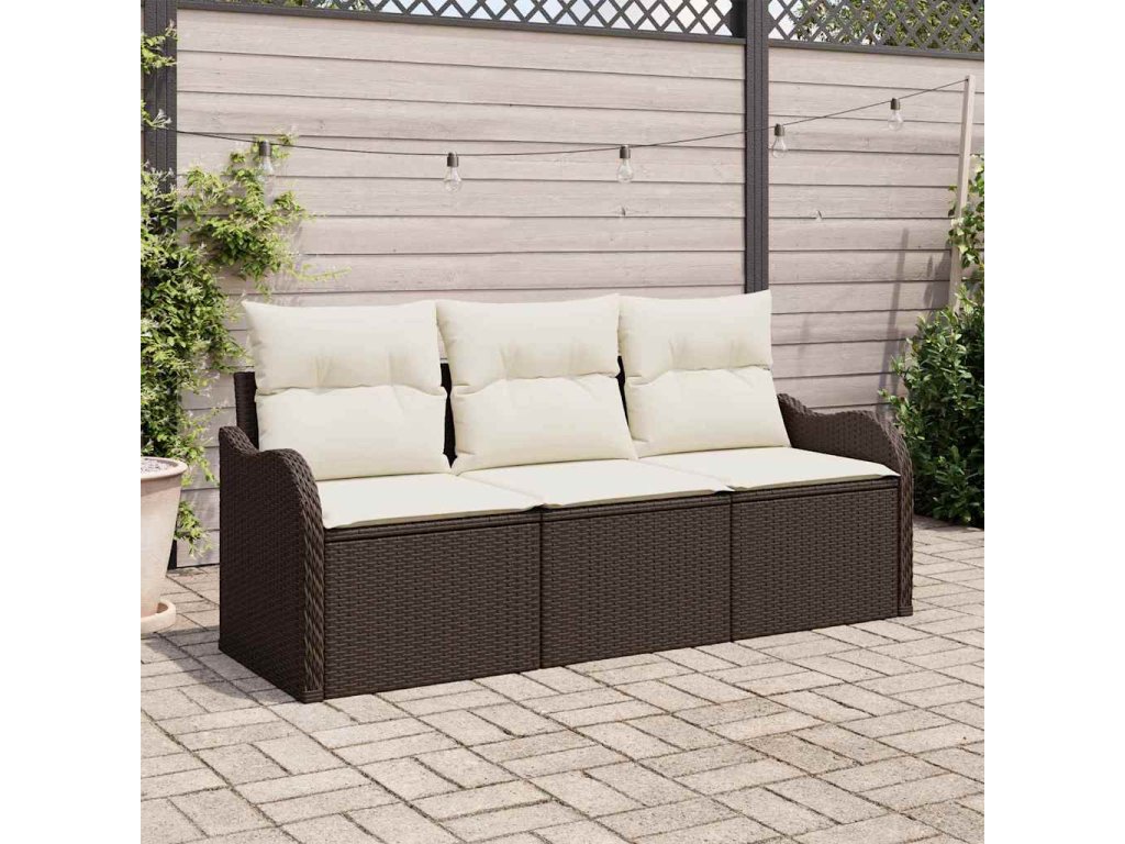 Sada zahradních pohovek s polštářem 3 pcs Hnědá Poly ratan 3354227