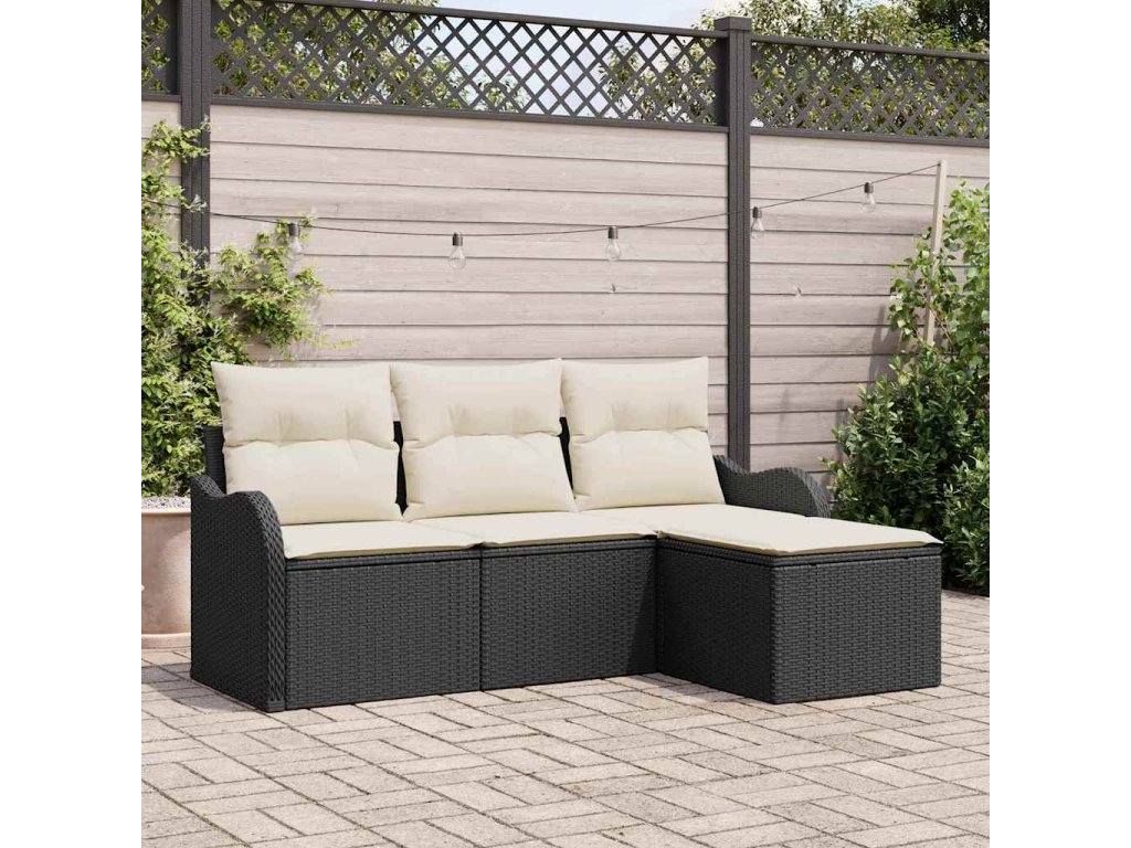 Sada zahradních pohovek s polštářem 4 pcs Černá Poly ratan 3345647