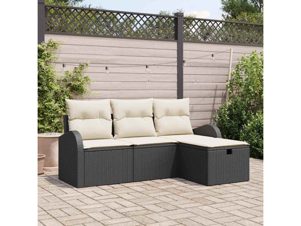 Sada zahradních pohovek s polštářem 4 pcs Černá Poly ratan 3360378