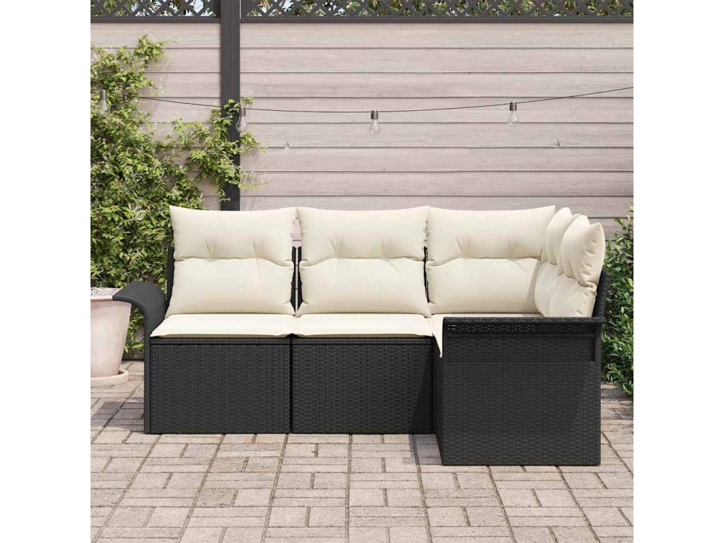 Sada zahradních pohovek s polštářem 4 pcs Černá polyratan 3345337