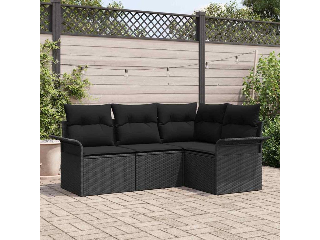 Sada zahradních pohovek s polštářem 4 pcs Černá polyratan 3345343