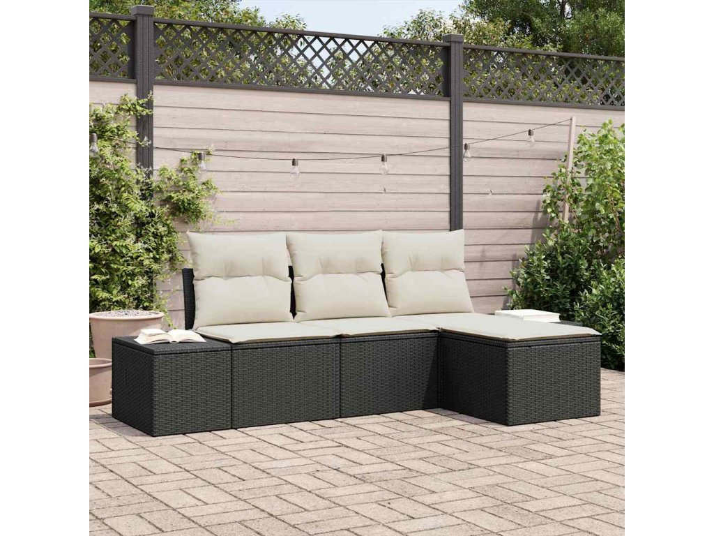 Sada zahradních pohovek s polštářem 4 pcs Černá polyratan 3347007