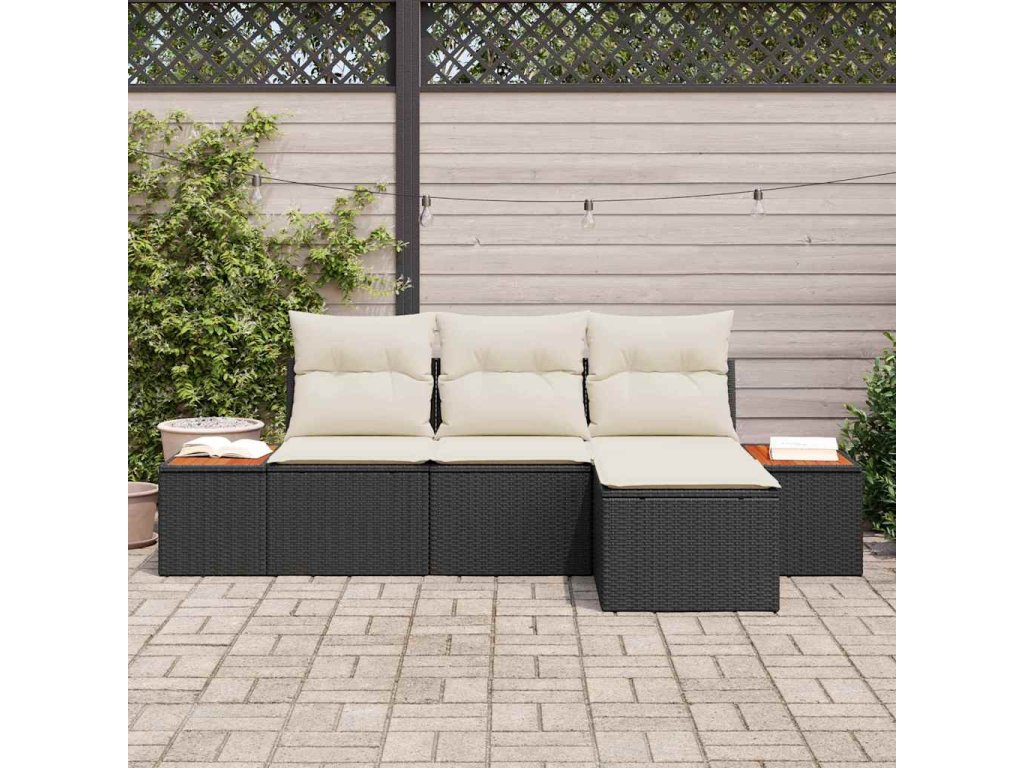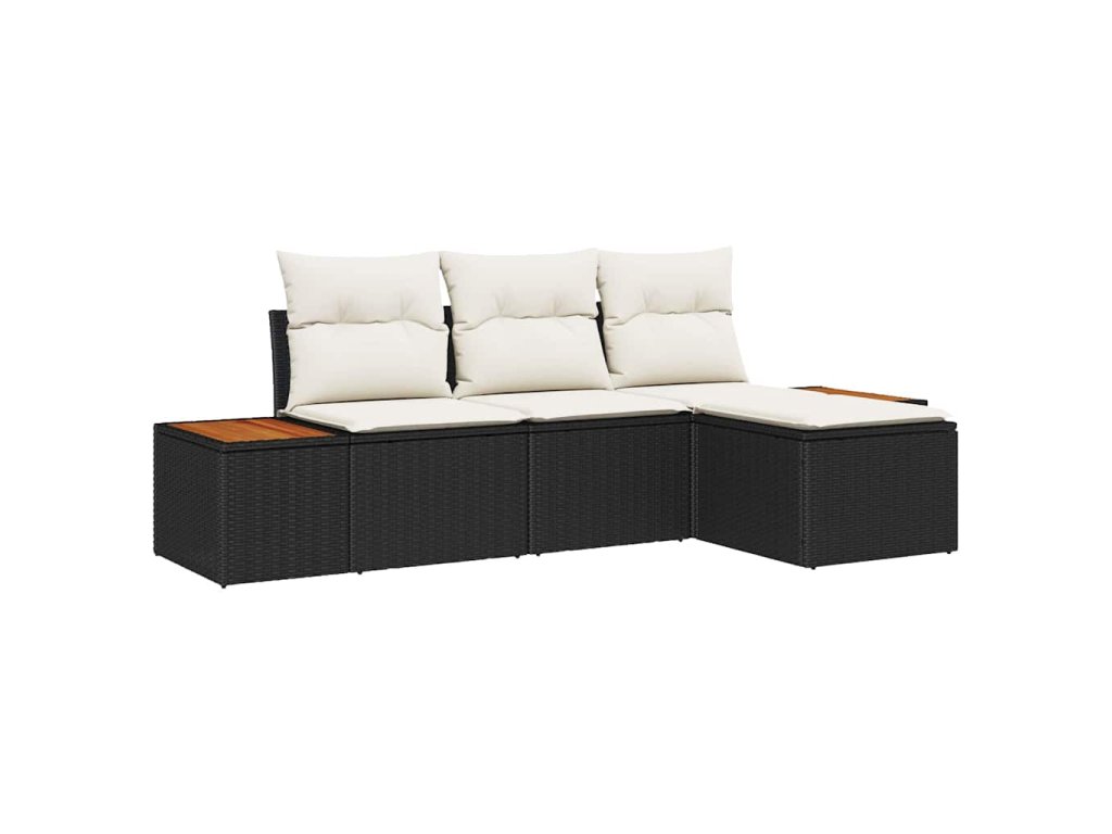 Sada zahradních pohovek s polštářem 4 pcs Černá polyratan 3348058