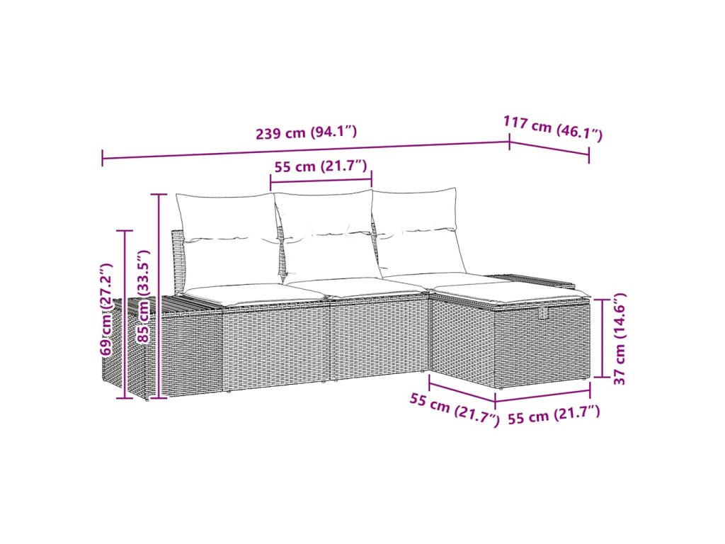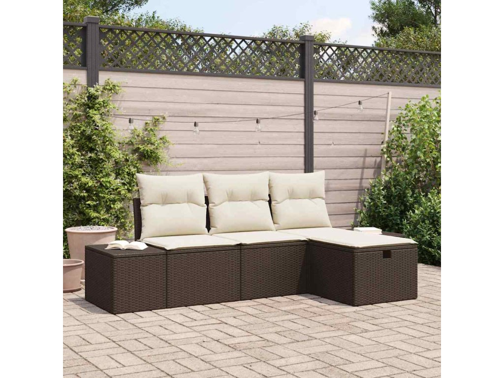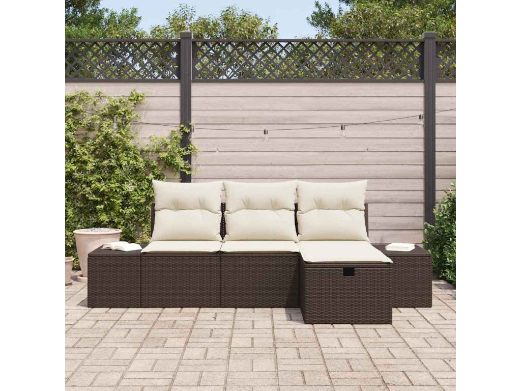 Sada zahradních pohovek s polštářem 4 pcs Hnědá Poly ratan 3359347