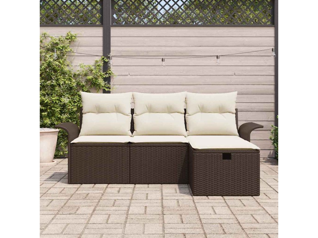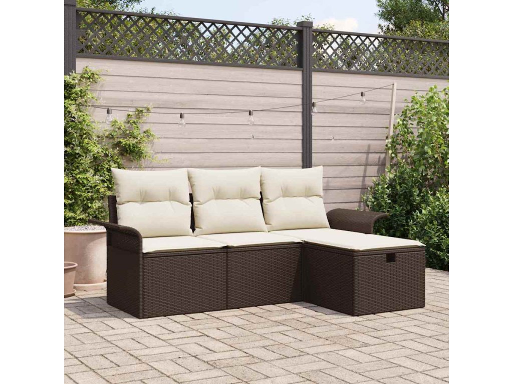 Sada zahradních pohovek s polštářem 4 pcs Hnědá Poly ratan 3360179