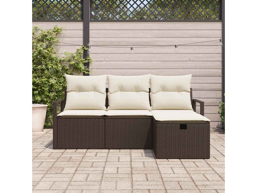 Sada zahradních pohovek s polštářem 4 pcs Hnědá Poly ratan 3360479