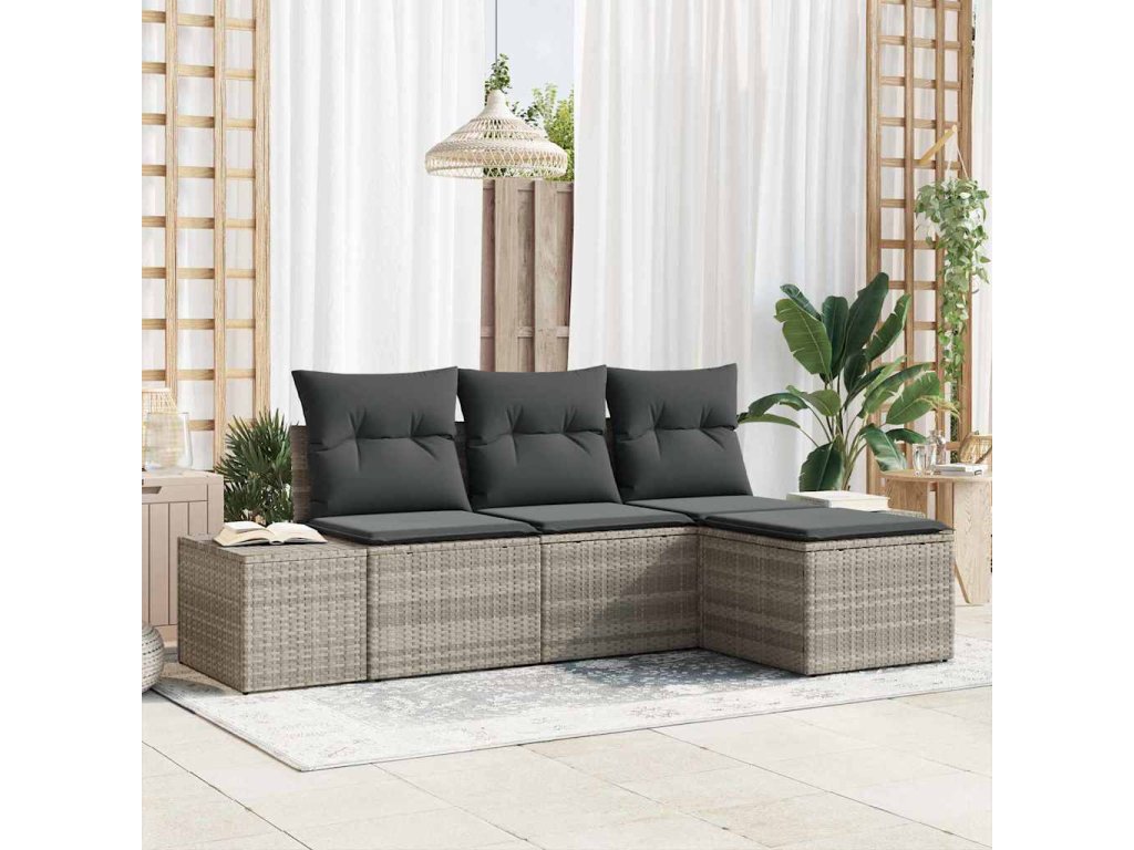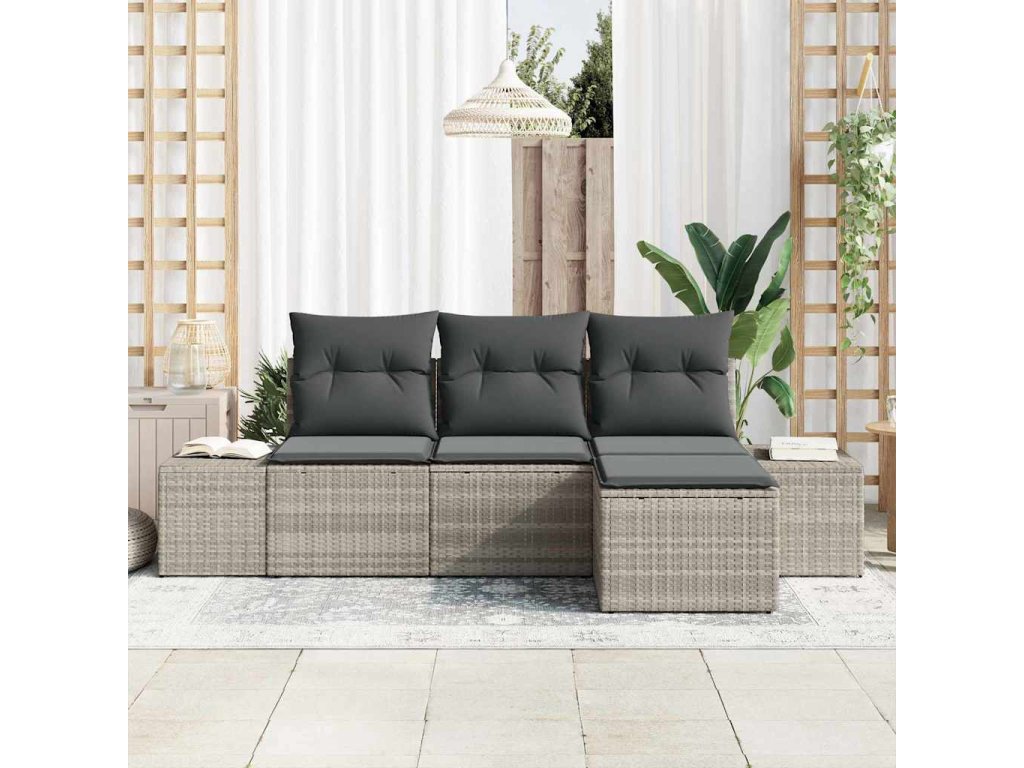 Sada zahradních pohovek s polštářem 4 pcs Světle šedá polyratan 3355681