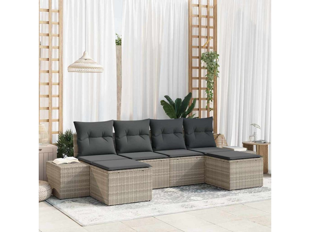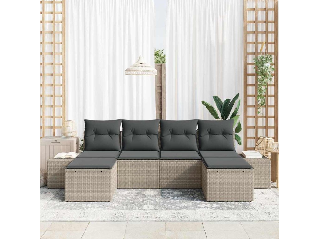 - Víceúčelové venkovní použití: Navržený pro venkovní zábavu, set odolává UV záření a vlhkosti, takže si udržuje svou kvalitu na slunci a v různých podmínkách. Skvělý na terasy, do zahrad nebo k bazénům, poskytuje variabilní řešení sezení pro každé venkovní prostředí. Integrované úložné prostory udržují polstry a doplňky v pořádku.